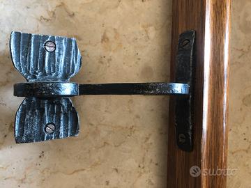 Vendo corrimano in legno con supporti in ferro battuto misure 140-150 cm