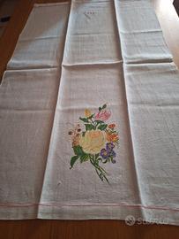 Cortesia nuova da bagno per ospite in lino dipinta con un bel disegno floreale.