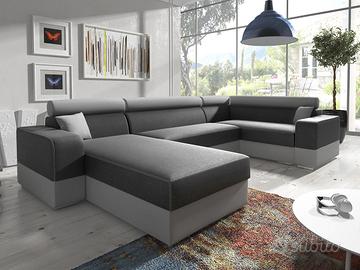 Cerchi un divano panoramico dalla struttura robusta ed affidabile? I nostri divani, prodotti da aziende competenti e specializzate, sono pezzi realizzati ad hoc per soddisfare i tuoi gusti più personali. Questo divano angolare ad U è realizzato con materiali di prima qualità ed è costruito per resistere. La sua struttura è solida e i rivestimenti di alta qualità ne assicurano una resistenza eccezionale all’usura. Personalizzalo con il colore che preferisci e goditi il comfort di un divano creato su misura. Prodotto esclusivo, creato apposta per te. Sottolineiamo che il rivestimento della funzione letto che fuoriesce può essere di colore diverso da quello evidenziato in foto e comunque non è in tinta ed è differente dalla combinazione di colore del divano che si sceglie.