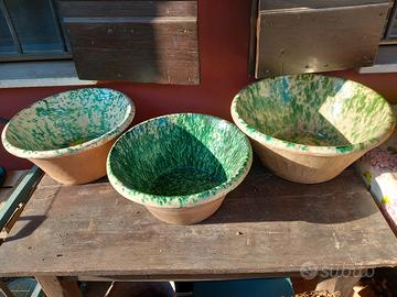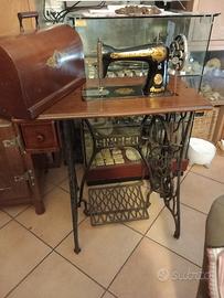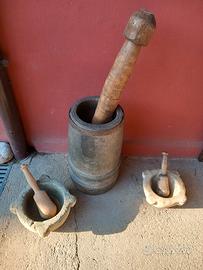 statua fine ottocento ,tris di mortai,uno in marmo uno in pietra, uno in legno con pestelli, tris di grandi vasi terracotta con interno invetriati inizio novecento, macchina da cucire Singer completa funzionante 1924,e antica ghiacciaia inizio novecento, tris di marmi e pietra.