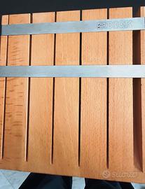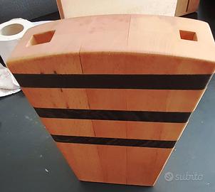 Ceppi per coltelli e vassoio per affettare pane tutti in legno massiccio e trattato per usi alimentari, invecchiato per stabilità termica, pezzi singoli o tutto in blocco.