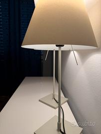 Costanzina Luceplan tavolo con base e paralume VENDIBILI A COPPIA O SINGOLA (chiedere in privato) Cult delle lampade di design italiano Da posizionare in qualsiasi ambiente e si adattano ad ogni stile Struttura in alluminio Colore alu Colore paralume Bianco Misure: Altezza 51cm (compreso paralume) Base 14 cm Paralume 26 cm Lampadina E14 Max 42W