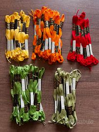 🚨SOLO 1€ a matassina. ACQUISTO MINIMO di 5 matassine a scelta. Scrivetemi in privato per la scelta dei colori da acquistare. Pacchetti nuovi di matassine di cotone da 4m per ricamo, punto croce, decalcabili etc. Colori misti, di alcune matassine sono disponibili più unità . Codici colori: - BIANCO (disponibili 46 unità ) - 963 (disponibili 35 unità ) - 3716 (disponibili 64 unità ) - 326 (disponibili 17 unità ) - 3831 (disponibili 62 unità ) - 3041 (disponibili 23 unità ) - 666 (disponibili 5 unità ) - 741 (disponibili 38 unità ) - 726 (disponibili 15 unità ) - 3766 (disponibili 14 unità ) - 3325 (disponibili 39 unità ) - 809 (disponibili 53 unità ) - 3848 (disponibili 16 unità ) - 318 (disponibili 52 unità ) - 3348 (disponibili 18 unità ) - 704 (disponibili 39 unità ) - 3827 (disponibili solo 3 unità ) - 167 (disponibili 12 unità ) - 738 (disponibili 48 unità ) - 833 (disponibili solo 2 unità ) - 3828 (disponibili 17 unità )