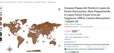 Creawoo Mappa del Mondo in Legno da Parete Decoraz