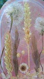 Un grande cuore che si illumina! Creazione in resina con soffioni, spighe di grano e altri inserti essiccati. Un romantico sfondo rosa sfumato completa il tutto ❤️