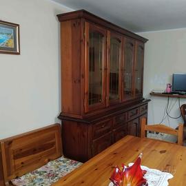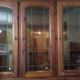 Credenza 4 ante con vetro decorato stile arte povera colore noce scuro. Prezzo trattabile.