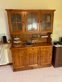 Credenza in pino di Svezia a vetri in ottimo stato con cassetti e sportelli. Misure 195 x al 145 prof 45