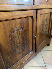 Credenza del 1890-1920 Art Nouveau creata in Piemonte (Italia) in massello di ciliegio con interno in legno dolce.