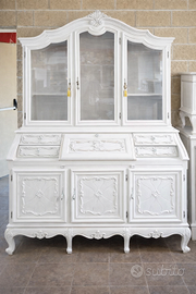 Oltre a poter essere acquistata nello stato originale, il mobile si presta molto bene anche a un intervento di restauro e verniciatura, come mostrato nell’immagine dimostrativa. Una finitura, ad esempio bianca o di altri colori, permette di trasformare completamente il mobile, rendendolo più luminoso e adatto anche a interni contemporanei, shabby chic o classico rivisitato, senza perdere il fascino delle lavorazioni originali.