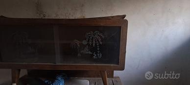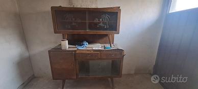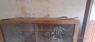 Credenza anni 50 in legno da restaurare, interni in specchio. Vendo anche solo i vetri