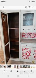 credenza degli anni 50/60 rivestita con carta da parati degli anni 70.