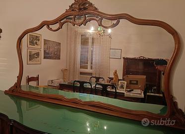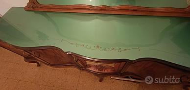 vendo credenza anni '50 tenuta benissimo, ben rifinita con ripiano in vetro lavorato. con specchiera con cornice intarsiata.