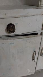 Il mobile ha già ricevuto una prima fase di lavorazione (finitura chiara), ma viene venduto come progetto di restauro da ultimare, offrendo l'opportunità di rifinirlo secondo il proprio gusto.