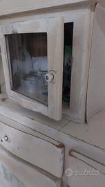 Vendesi affascinante credenza vintage, un pezzo dal design distintivo con angoli smussati e linee morbide, ideale per chi cerca un mobile d'epoca da personalizzare.