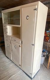 colore panna. riverniciato una volta. presenta qualche imperfezione ma si sistema velocemente. vetrina scorrevole. ante e cassettini. manca un ripiano all'interno. accetto offerte.