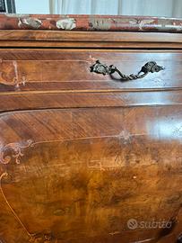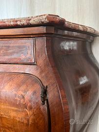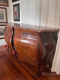 Credenza antica bombata con inserti in radica