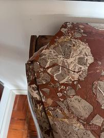 SVENDO Bellissima credenza bombata fine Ottocento/primi Novecento con inserti decorativi in radica sulle ante e i lati, con piano in marmo rosso. Non c’e un solo lato dritto, è tutta curva e sinuosa, un pezzo di grande personalita che devo svendere per trasloco. Due cassetti capienti e doppio ripiano interno, anche lui molto capiente. Ottime condizioni, in alcuni piccoli punti il rivestimento in radica si è levato e l’angolo posteriore sinistro del piano in marmo si è sbeccato come da foto. Ritiro a Milano città e trasporto a carico dell’acquirente. Terzo piano senza ascensore. Dimensioni: 180x70x103