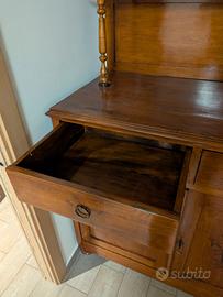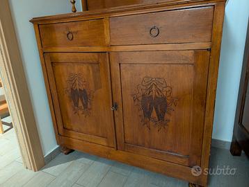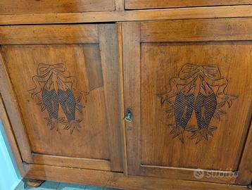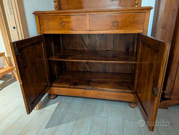 Credenza antica con piattaia restaurata. Effettuato trattamento antitarlo mediante camera a gas da CIAT. Misure L 110 P 57 H 195