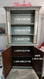 Vendo credenza antica dell' 800' realizzata in legno di Pioppo. 2400€ TRATTABILI -ACCETTO OFFERTE- -VALUTERO' OFFERTE RAGIONEVOLI- Misure: H 263 L 137,5 P 53 Misure dei due corpi: CORPO INFERIORE: H 118 L 137,5 P 53 Composto da due ante: H 103 L 49 All' interno Misure mensola : L 124 P 44 la mensola divide il corpo inferiore in due parti: Piano terra H 49,5 piano sovrastante H 51 cm. CORPO SUPERIORE: H 145 L 137,5 P 35. Composto da 3 Mensole: Da Giù 1) L 124 H 37 P 30 2) L 124 H 41 P 30 3)L 124 H48 P 30 PER QUALSIASI INFORMAZIONE BASTA CHIAMARE AL NUMERO 3279170312 . SE AVETE BISOGNO POSSO MANDARVI ALTRE FOTO E UN VIDEO. (OLTRE A VEDERLA DAL VIVO NELL' ULTIMA FASE DELLA TRATTATIVA.) N.B. MOBILE ORIGINALE! MOBILE DI FAMIGLIA ORIGINI VENEZIANE DAL MIO BISNONNO TRAMANDATO A MIO NONNO PASSATO A MIO PADRE E ADESSO DA CIRCA 8 ANNI A ME. VENDO PER CAUSA DI MIA MOGLIE VUOLE CAMBIARE ARREDAMENTO ULTRA MODERNO...