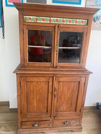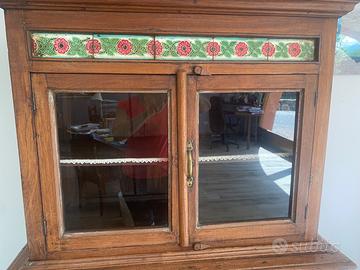 Vendo una credenza in noce tanganica con decori in maioliche fiorate. Misure 99x1.70x49