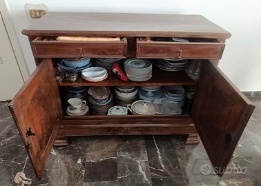 Credenza in noce scuro risalente a fine 800. In perfette condizioni. restaurato. Visionabile e ritirabile a Pianoro, no spedizione corriere (si danneggerebbe). Misure esatte : 130x56xh98 Prezzo trattabile