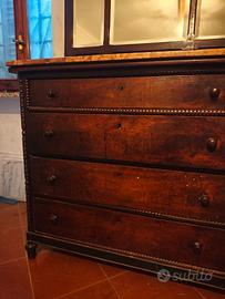come da foto è evidente la necessità di un restauro, usata fino a pochi giorni fa come credenza per oggetti. All'epoca fu fatto su misura un piano superiore in marmo per creare una superficie liscia, leggermente più corta per fare rientrare lo specchio, anch'esso dello stesso periodo