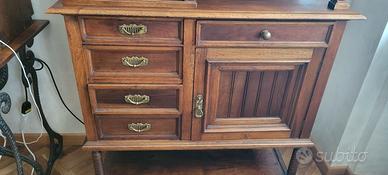 Bellissimo mobile in legno massello, con dettagli decorativi raffinati e struttura particolarmente dinamica. Ideale per chi cerca un pezzo di arredamento elegante e di qualità, perfetto per salotti, studi o ingressi.