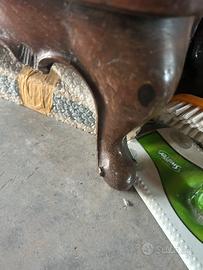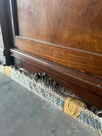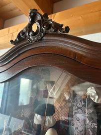 La credenza presenta moltissime rifiniture incise, come si vede dalle foto. Per quanto riguarda la credenza è tutta in legno tranne il fondo dei 3 cassetti che è rivestito di compensato(non si nota nemmeno).