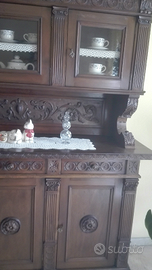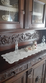 Credenza stile rinascimento costruita artigianalmente agli inizi del 1900, restaurata, con ante in vetro e serrature con chiavi.