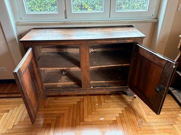 Vendo credenza antica del XIX secolo simile allo stile Luigi XIV ante con pannelli lavorati a diamante e piedini.