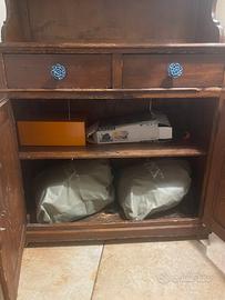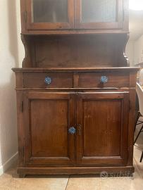 Credenza antica di legno, in buono stato, capiente. E’ possibile utilizzarla anche come piattiera in quanto la parte alta si stacca da quella inferiore. Misure: -altezza 2,27 m - profondità 50 cm - larghezza 1,04 m