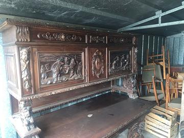 Vendo importante credenza antica in stile neo-rinascimentale, realizzata in legno massello scuro e finemente intagliata.