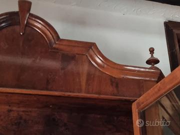 credenza antica ben conservata, vetri originali, già trattata con antitarlo, legno massello . Misure altezza parte bassa 83cm, altezza parte alta 108 cm, 167,5 profondità 41 cm.