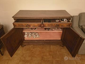 credenza antichità con due cassetti e due ante a battenti. ripiani interni rivestiti com carta fiorentina. misura 150x62x105