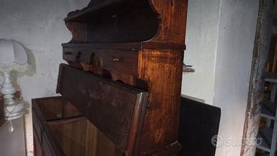 credenza in legno di ciliegio, 2 pezzi, vintage, con largo spazio; utilizzo come dispensa o scansia.