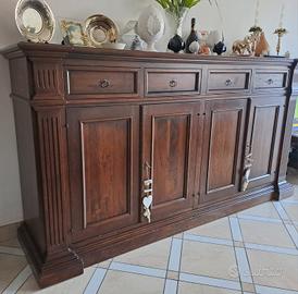 Credenza in legno stile arte povera, 4 ante (2+2) e 4 cassetti. Qualità alta. Vendo per rinnovo arredo.
