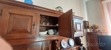 Vendo Credenza Arte Povera in legno massicco colore Noce scuro con 3 ante 3 cassetti sotto 4 ante sopra e ampio spazio intermedio con cassettini porta oggetti.