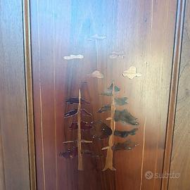 credenza artigianale con decorazioni a intarsio