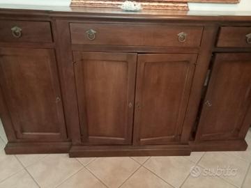 vendo per inutilizzo credenza in legno tenuta in ottimo stato, 4 ante, 3 cassetti, altezza 1,20 metri, profondità 56 cm, larghezza metri 2,20 , prezzo 500€ leggermente trattabile