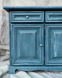 Credenza azzurro petrolio mobile in legno massello