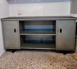 CREDENZA/BANCO DA LAVORO VINTAGE FINE ANNI ’60 IN METALLO E SIMILPELLE – PEZZO UNICO
