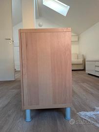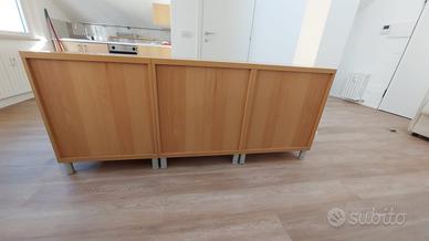 Credenza Ikea effetto rovere in ottime condizioni (vedere le foto), largo 180 cm, profondo 41,5 cm incluso l'ingombro dell'anta, alto 64 cm più 10 cm di piedi (rimovibili) con i piedi altezza quindi 74 cm. Perfetto per soggiorno, credenza, ma anche appoggio TV. Una particolarità rara di questo mobile (soprattutto per IKEA) è che il mobile è rifinito anche nella parte posteriore (guardate le foto)! se volete è quindi anche perfetto nel caso vogliate usarlo per separare due zone di una stanza.