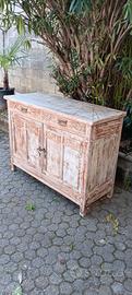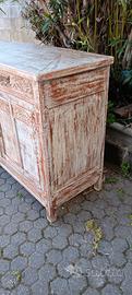 Credenza antica in legno di rovere, trattato in stile shaby. Adattabile in diversi luoghi. Notevole effetto. 134 x 51 alt.99 .