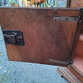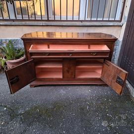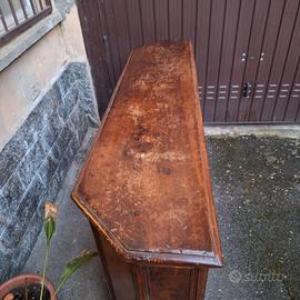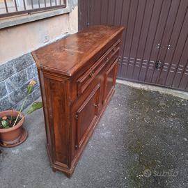 Fantastica credenza bassa ottocentesca a base esagonale con due sportelli e un cassetto. Ferramenta originale, serrature funzionanti, condizioni generali molto buone. Si segnala la mancanza di una chiave. rifinita anche sul retro, quindi posizionabile anche nel centro di una stanza. Misure: 146 cm x 36 x 95.
