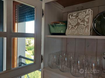 Credenza shabby, prodotto su misura da falegnameria, è composta da due pezzi, la parte sotto e quella sopra appoggiata.