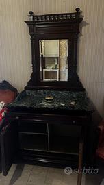 Credenza in ottime condizioni, realizzata in legno massello, con piano in marmo e specchio.