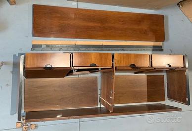 Credenza a 4 sportelli Logata Azucena di Luigi Caccia Dominioni, tipo noce, spigoli in metallo brunito ( come il modello in foto ). Legno, metallo Euro 2500 La credenza è al momento smontata, mancano i 2 pannelli di chiusura posteriori e volendo di qualche restauro nelle parti interne. cm 218x47x75h