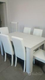 •Sala da pranzo con tavolo + 6 sedie in ecopelle bianca, mobile e consolle