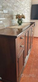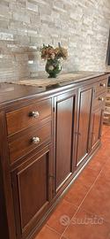 Credenza da soggiorno in vero legno, usura dell’uso quotidiano.