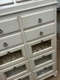 Credenza classica in legno massello bianco avorio patinato, piedi torniti.